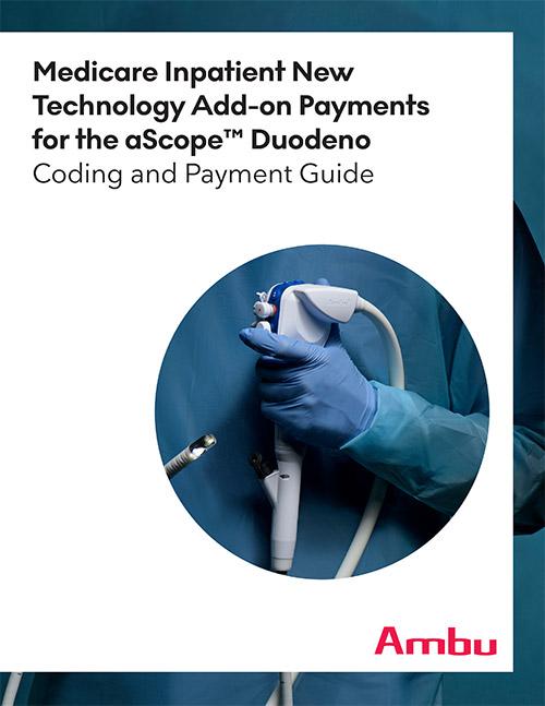 The Centers for Medicare & Medicaid Services (CMS) approved a New Technology Add-on Payment (NTAP) for the Ambu aScope Duodeno. CMS provides hospitals with additional device reimbursement when the aScope Duodeno is used for eligible cases in the hospital inpatient setting.