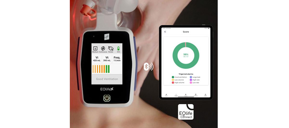 EOlife X offers real-time feedback, helping first responders assess ventilation efficiency, detect air leakage and modify their technique. It's the perfect training companion for those looking to validate and improve their manual ventilation skills. Thanks to the EOlife® Connect app, training sessions can be downloaded and saved to allow booster training and spaced learning.