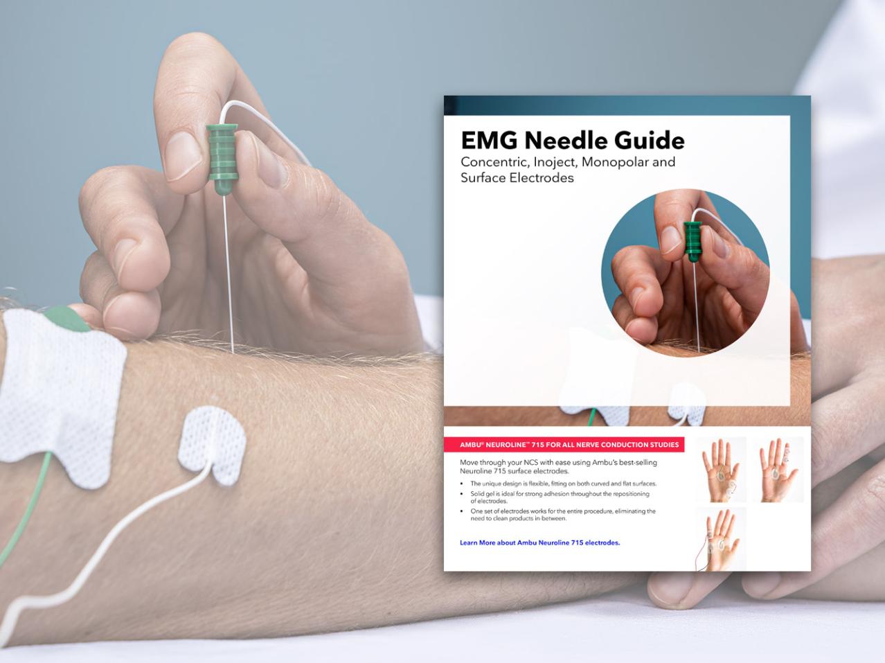 The new Ambu EMG Needle Guide brings our full Neuroline portfolio — Monopolar, Concentric, Inoject and Surface Electrodes (714 and 715) — into one easy reference.