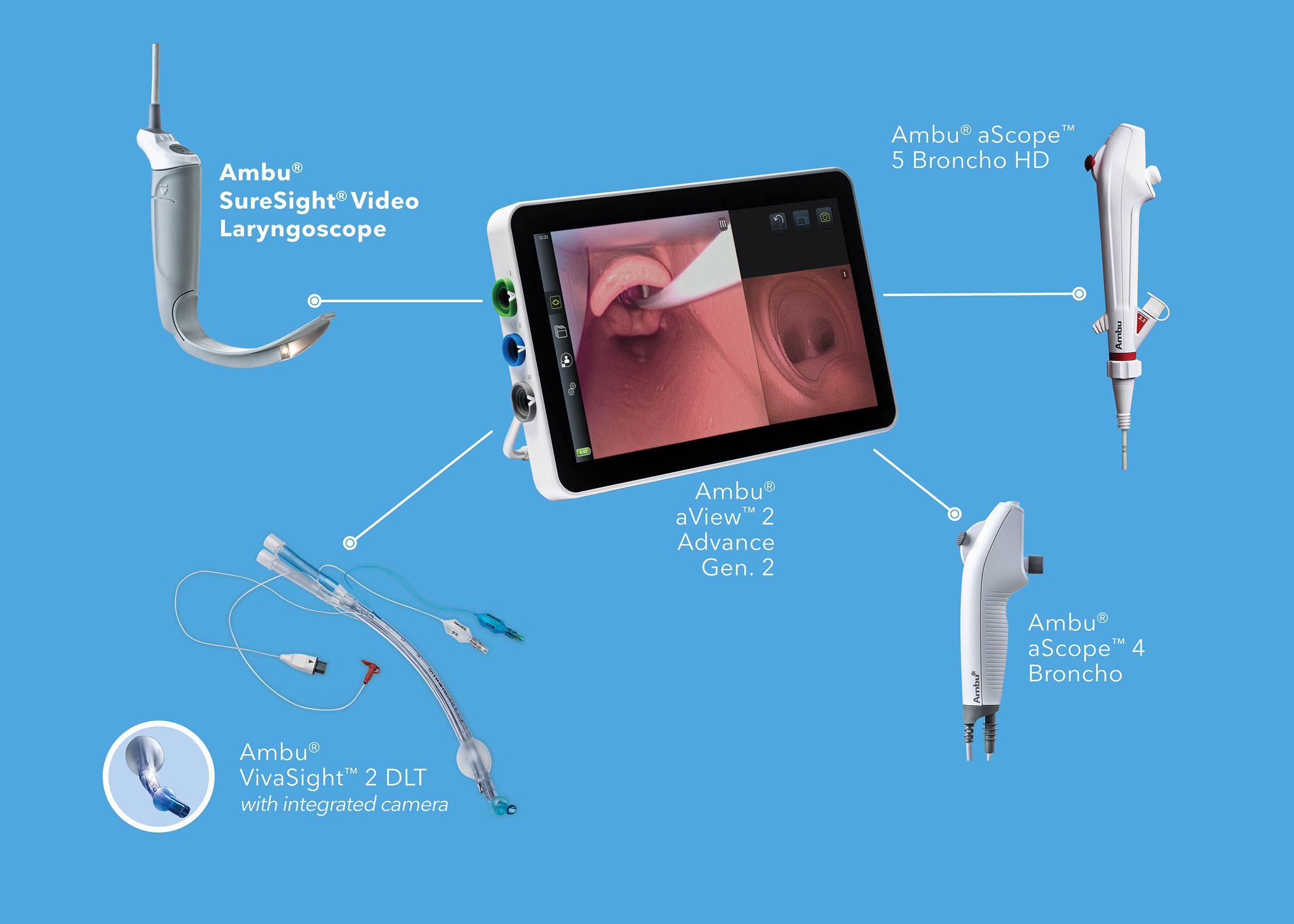 The Ambu airway visualization platform is designed to save space and reduce task complexity—an integrated platform that puts key airway visualization tools within reach and ready to use.