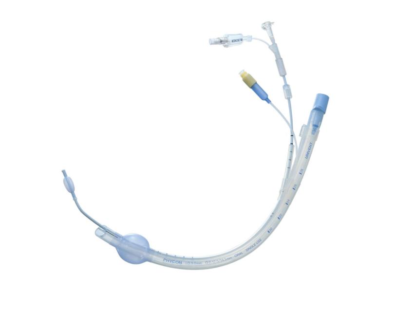 A double-lumen tube that utilizes medical grade silicone designed to minimize trauma and reduce heat-related kinking.
